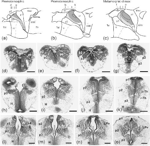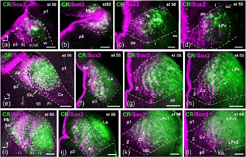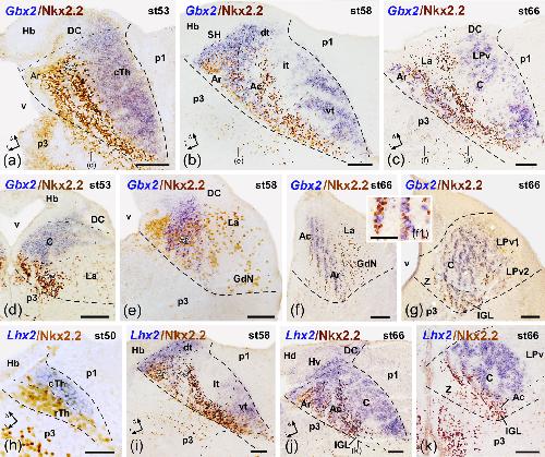 Amphibian thalamic nuclear organization during larval development and in the adult frog Xenopus laevis: Genoarchitecture and hodological analysis., J Comp Neurol 2020 |