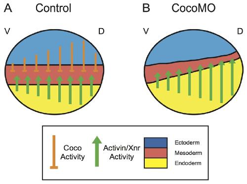 Coco regulates dorsoventral specification of germ layers via inhibition of TGFβ signalling., Development 2013 |