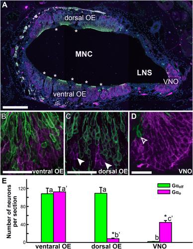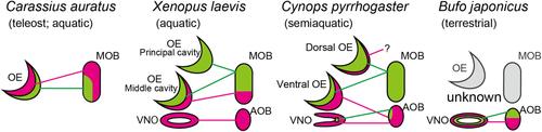 Expression of G proteins in the olfactory receptor neurons of the newt Cynops pyrrhogaster: their unique projection into the olfactory bulbs., J Comp Neurol 2014 |