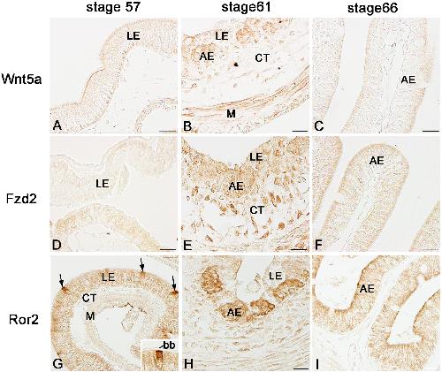 Thyroid hormone-regulated Wnt5a/Ror2 signaling is essential for dedifferentiation of larval epithelial cells into adult stem cells in the Xenopus laevis intestine., PLoS One 2014 |