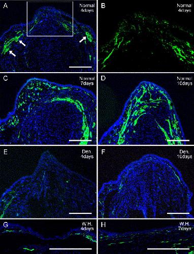 Nerve-dependent and -independent events in blastema formation during Xenopus froglet limb regeneration., Dev Biol 2005 |