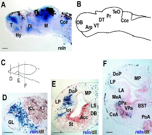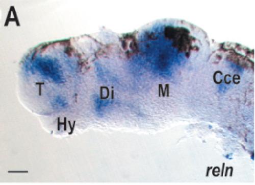 Conserved and divergent patterns of Reelin expression in the zebrafish central nervous system., J Comp Neurol 2002 |