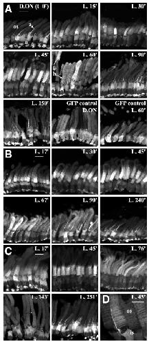 Arrestin migrates in photoreceptors in response to light: a study of arrestin localization using an arrestin-GFP fusion protein in transgenic frogs., Exp Eye Res 2003 |