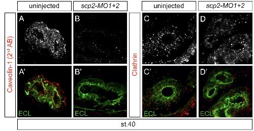 Sterol carrier protein 2 regulates proximal tubule size in the Xenopus pronephric kidney by modulating lipid rafts., Dev Biol 2014 |