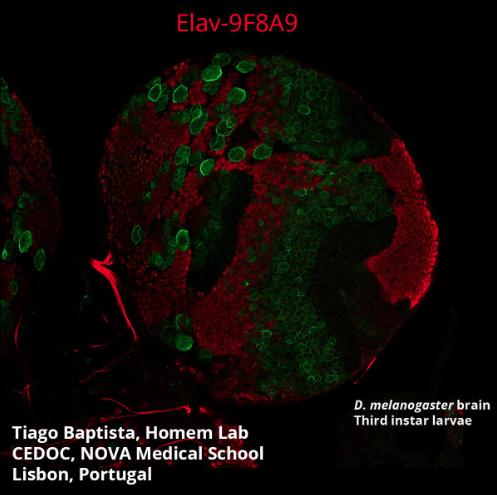 Description: Citation: (DSHB Cat# Elav-9F8A9, RRID:AB_528217). Please email citation to DSHB. Fusion: 3/6/92. elav-9F8A9 is is a marker for most cells in the central and peripheral nervous system, at all stages of development, once they have differentiated into a neuron.