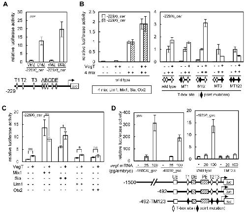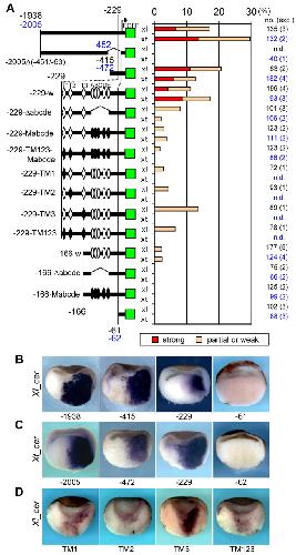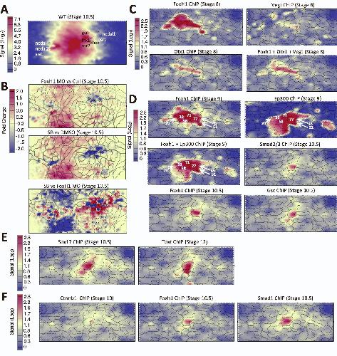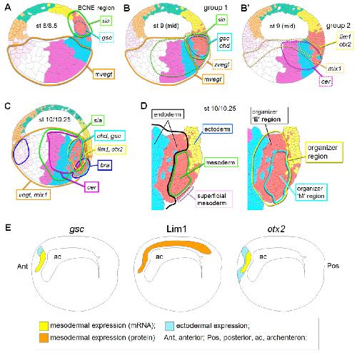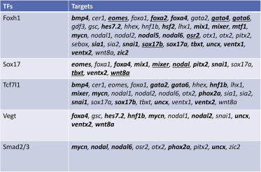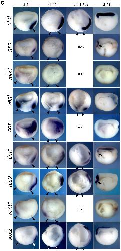 Dynamic in vivo binding of transcription factors to cis-regulatory modules of cer and gsc in the stepwise formation of the Spemann-Mangold organizer., Development 2012 |