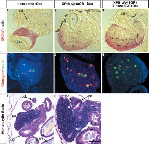 Combined ectopic expression of Pdx1 and Ptf1a/p48 results in the stable conversion of posterior endoderm into endocrine and exocrine pancreatic tissue., Genes Dev 2006 |