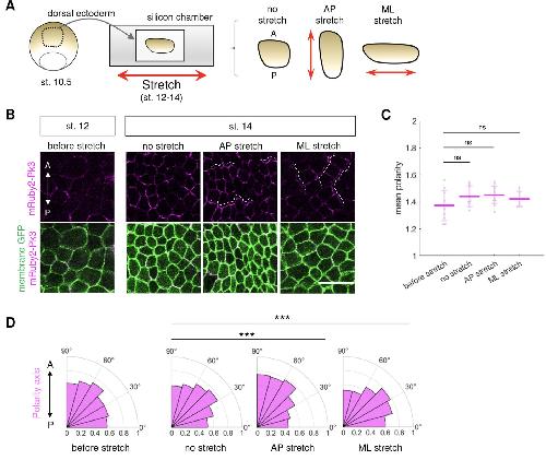 Alignment of the cell long axis by unidirectional tension acts cooperatively with Wnt signalling to establish planar cell polarity., Development 2022 |