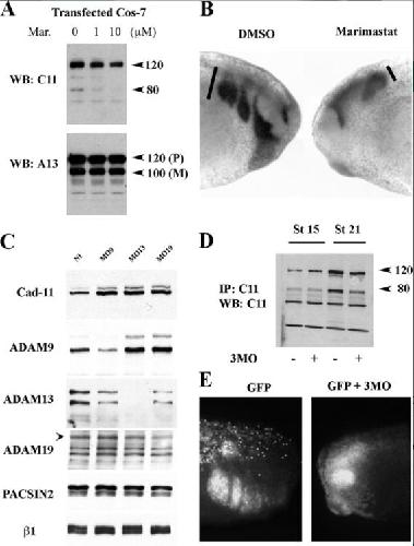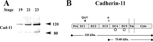 Extracellular cleavage of cadherin-11 by ADAM metalloproteases is essential for Xenopus cranial neural crest cell migration., Mol Biol Cell 2009 |