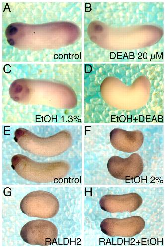Ethanol induces embryonic malformations by competing for retinaldehyde dehydrogenase activity during vertebrate gastrulation., Dis Model Mech 2009 |
