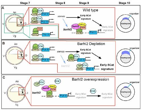 Barhl2 maintains T cell factors as repressors and thereby switches off the Wnt/β-Catenin response driving Spemann organizer formation., Development 2019 |