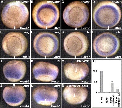 The initiation of Hox gene expression in Xenopus laevis is controlled by Brachyury and BMP-4., Dev Biol 2004 |