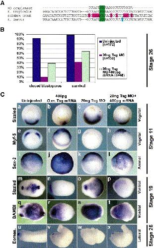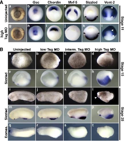 Twisted gastrulation is required for forebrain specification and cooperates with Chordin to inhibit BMP signaling during X. tropicalis gastrulation., Dev Biol 2006 |