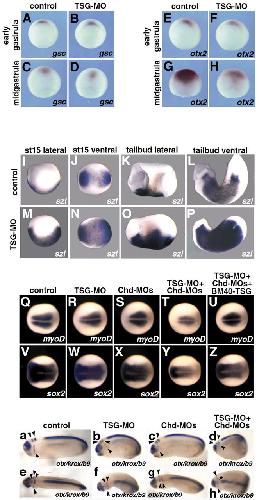 Twisted gastrulation loss-of-function analyses support its role as a BMP inhibitor during early Xenopus embryogenesis., Development 2003 |