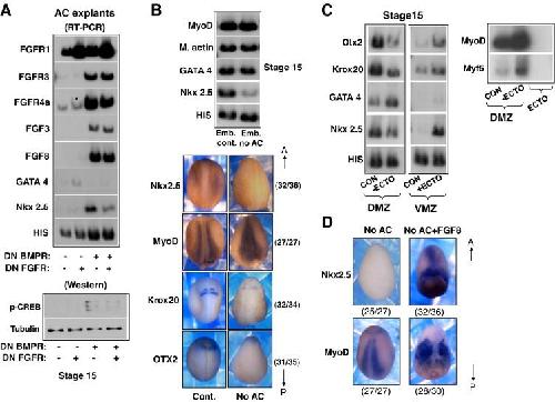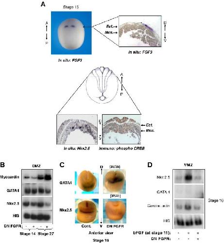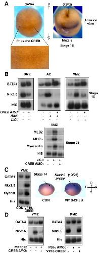 Neural ectoderm-secreted FGF initiates the expression of Nkx2.5 in cardiac progenitors via a p38 MAPK/CREB pathway., Dev Biol 2009 |