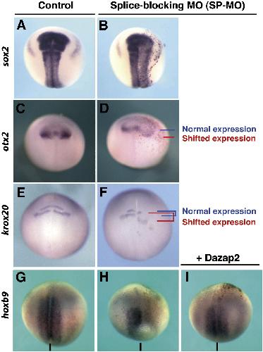 Dazap2 is required for FGF-mediated posterior neural patterning, independent of Wnt and Cdx function., Dev Biol 2009 |