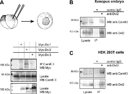 Distinct functionality of dishevelled isoforms on Ca2+/calmodulin-dependent protein kinase 2 (CamKII) in Xenopus gastrulation., Mol Biol Cell 2015 |