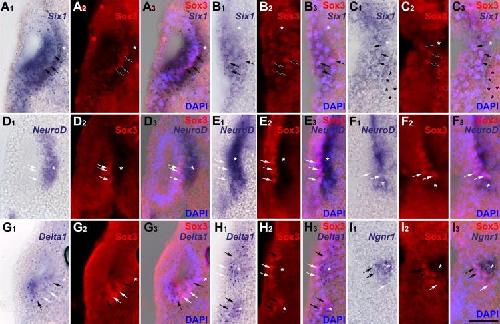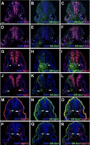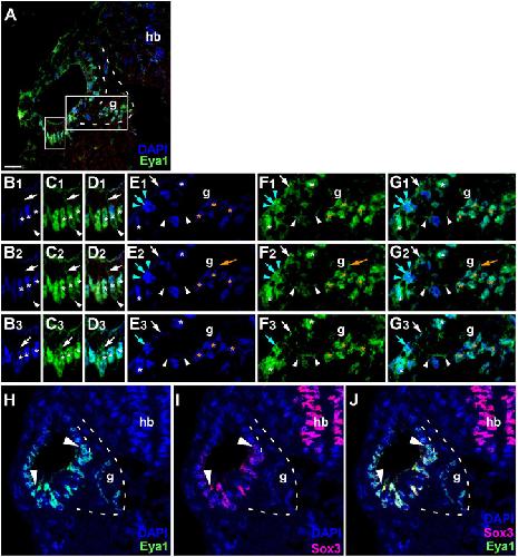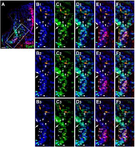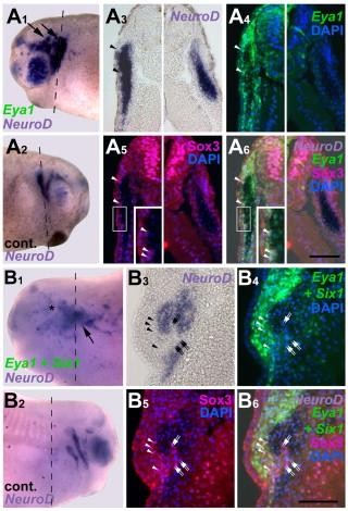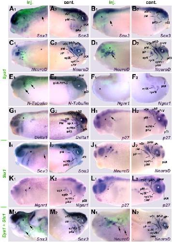 Eya1 and Six1 promote neurogenesis in the cranial placodes in a SoxB1-dependent fashion., Dev Biol 2008 |