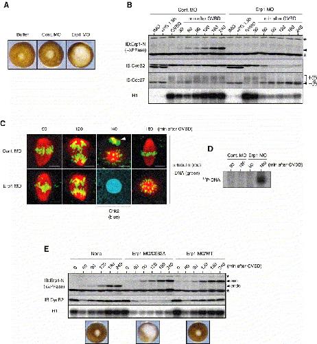 Erp1/Emi2 is essential for the meiosis I to meiosis II transition in Xenopus oocytes., Dev Biol 2007 |