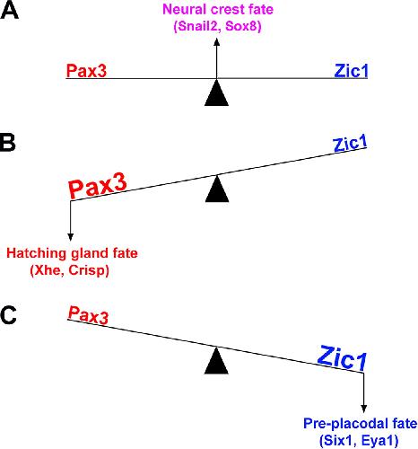 The activity of Pax3 and Zic1 regulates three distinct cell fates at the neural plate border., Mol Biol Cell 2007 |