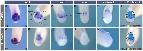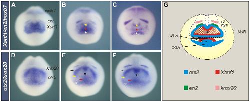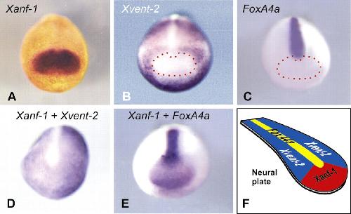 Patterning the forebrain: FoxA4a/Pintallavis and Xvent2 determine the posterior limit of Xanf1 expression in the neural plate., Development 2004 |
