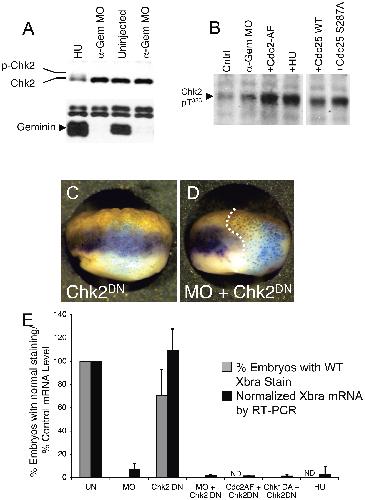 Geminin deficiency causes a Chk1-dependent G2 arrest in Xenopus., Mol Biol Cell 2002 |