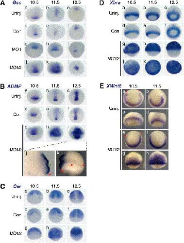 Lefty-dependent inhibition of Nodal- and Wnt-responsive organizer gene expression is essential for normal gastrulation., Curr Biol 2002 |