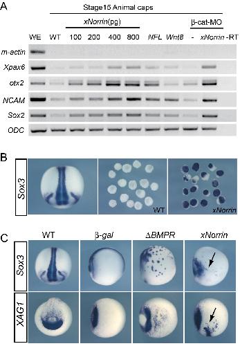 Maternal xNorrin, a canonical Wnt signaling agonist and TGF-β antagonist, controls early neuroectoderm specification in Xenopus., PLoS Biol 2012 |