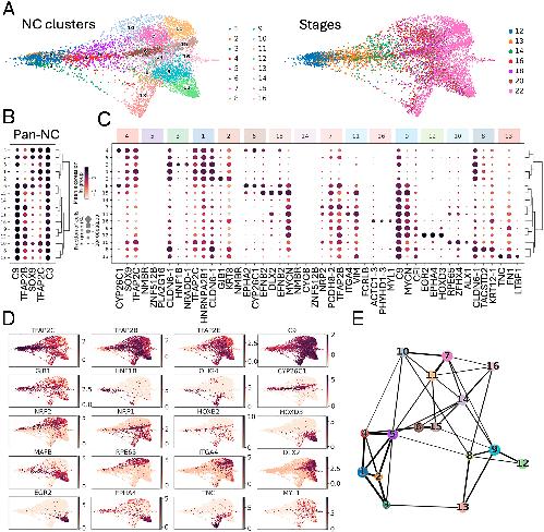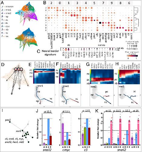A time-resolved single-cell roadmap of the logic driving anterior neural crest diversification from neural border to migration stages., Proc Natl Acad Sci U S A 2024 |