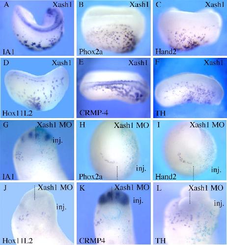 Xenopus zinc finger transcription factor IA1 (Insm1) expression marks anteroventral noradrenergic neuron progenitors in Xenopus embryos., Dev Dyn 2008 |