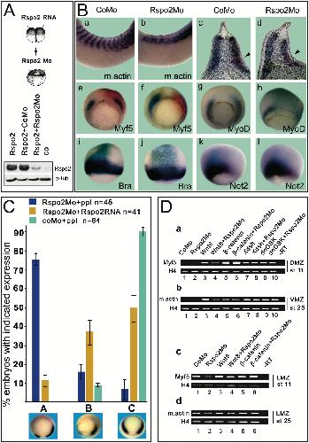 R-Spondin2 is a secreted activator of Wnt/beta-catenin signaling and is required for Xenopus myogenesis., Dev Cell 2004 |