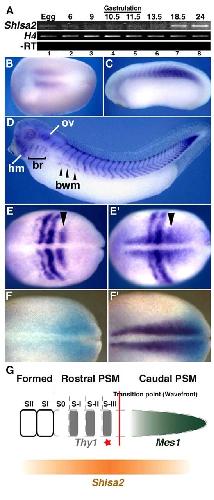 Shisa2 promotes the maturation of somitic precursors and transition to the segmental fate in Xenopus embryos., Development 2006 |