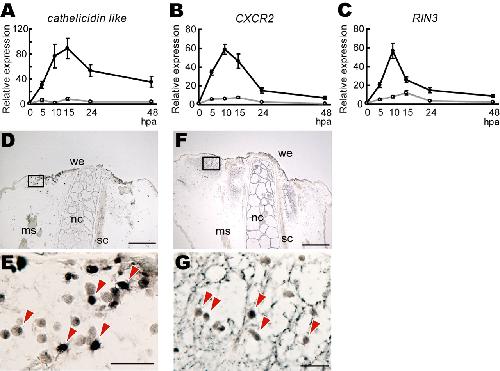 Suppression of the immune response potentiates tadpole tail regeneration during the refractory period., Development 2009 |