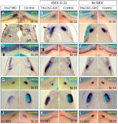 Role of Tbx2 in defining the territory of the pronephric nephron., Development 2011 |