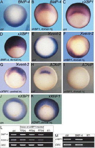 XBP1 forms a regulatory loop with BMP-4 and suppresses mesodermal and neural differentiation in Xenopus embryos., Mech Dev 2006 |