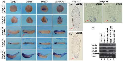 Claudin5 genes encoding tight junction proteins are required for Xenopus heart formation., Dev Growth Differ 2010 |