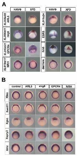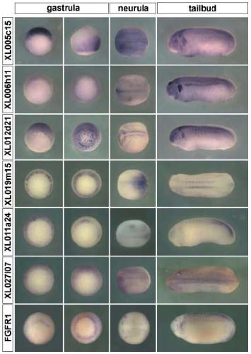 Screening of FGF target genes in Xenopus by microarray: temporal dissection of the signalling pathway using a chemical inhibitor., Genes Cells 2004 |