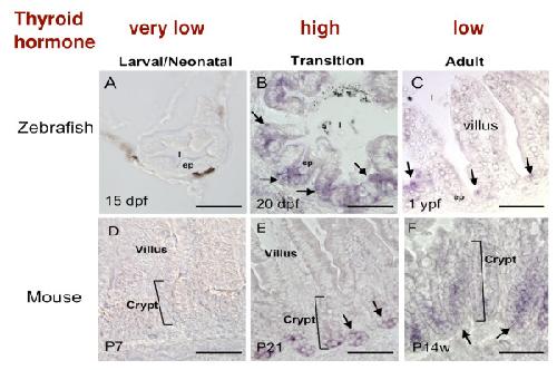 The development of the adult intestinal stem cells: Insights from studies on thyroid hormone-dependent amphibian metamorphosis., Cell Biosci 2011 |