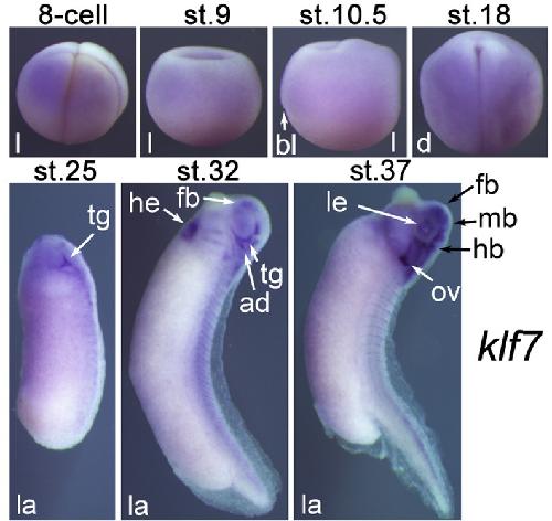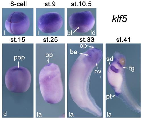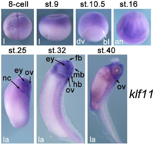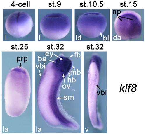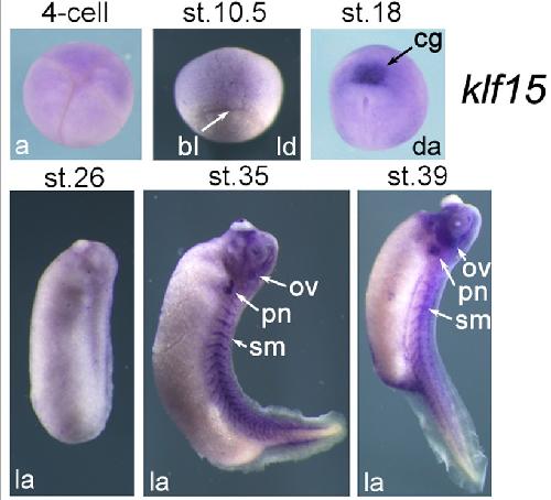 Kruppel-like factor family genes are expressed during Xenopus embryogenesis and involved in germ layer formation and body axis patterning., Dev Dyn 2015 |