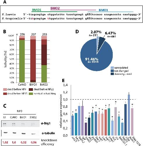 ???morpholino.displaySummary.papersFirst??? Brg1 chromatin remodeling ATPase balances germ layer patterning by amplifying the transcriptional burst at midblastula transition., PLoS Genet 2017