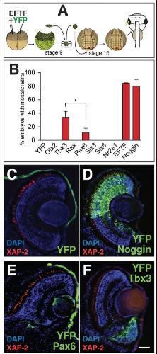 ???morpholino.displaySummary.papersFirst??? Tbx3 represses bmp4 expression and, with Pax6, is required and sufficient for retina formation., Development 2016