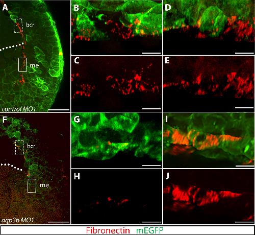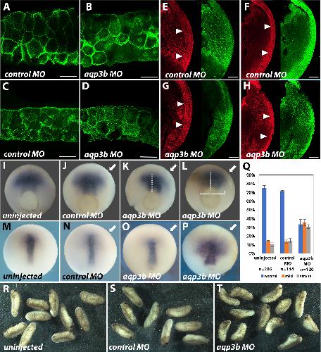 Roles for Xenopus aquaporin-3b (aqp3.L) during gastrulation: Fibrillar fibronectin and tissue boundary establishment in the dorsal margin., Dev Biol 2018 |
