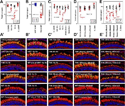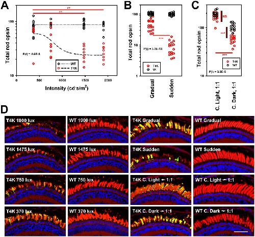 Synchronized photoactivation of T4K rhodopsin causes a chromophore-dependent retinal degeneration that is moderated by interaction with phototransduction cascade components., J Neurosci 2024 |