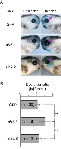 Co-accumulation of cis-regulatory and coding mutations during the pseudogenization of the Xenopus laevis homoeologs six6.L and six6.S.,