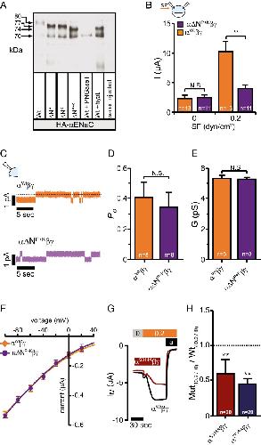 Shear force sensing of epithelial Na+ channel (ENaC) relies on N-glycosylated asparagines in the palm and knuckle domains of αENaC.,