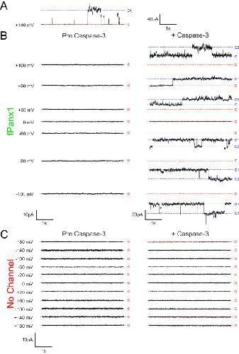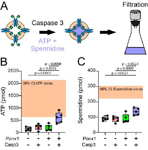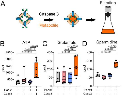 ATP and large signaling metabolites flux through caspase-activated Pannexin 1 channels.,
