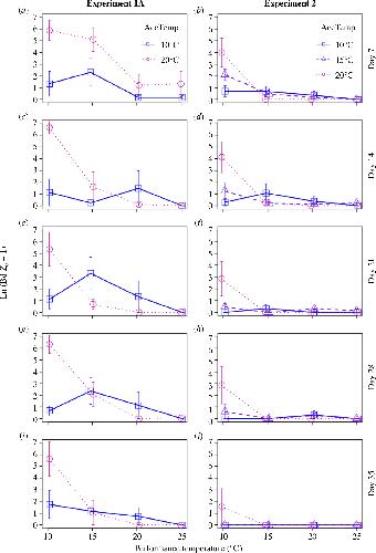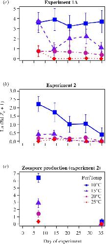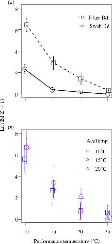 Dynamic effects of thermal acclimation on chytridiomycosis infection intensity and transmission potential in Xenopus laevis.,