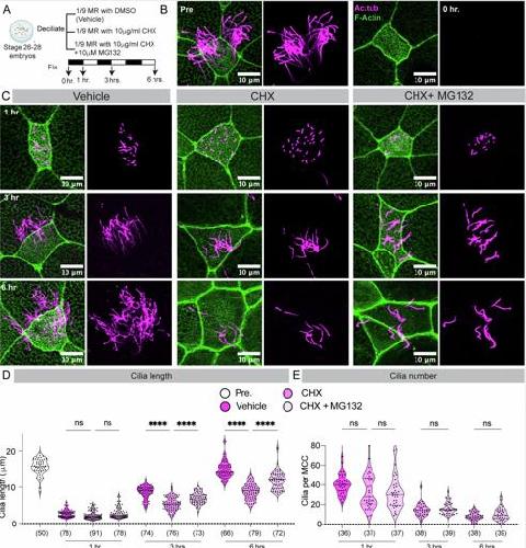 Mechanisms of cilia regeneration in Xenopus multiciliated epithelium in vivo.,