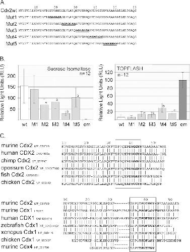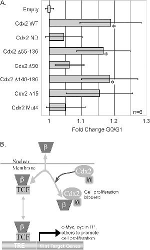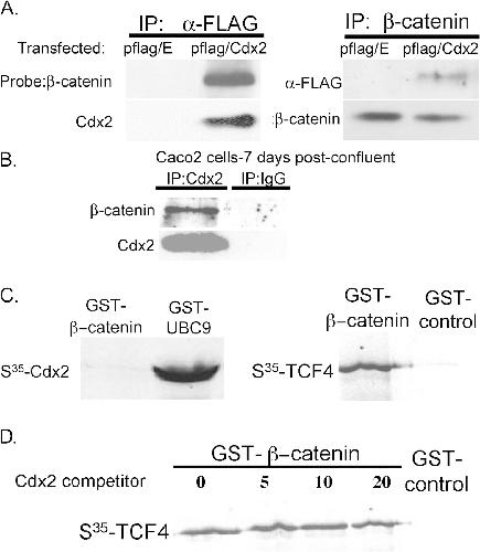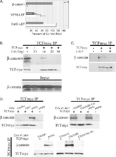 The intestine-specific transcription factor Cdx2 inhibits beta-catenin/TCF transcriptional activity by disrupting the beta-catenin-TCF protein complex.,