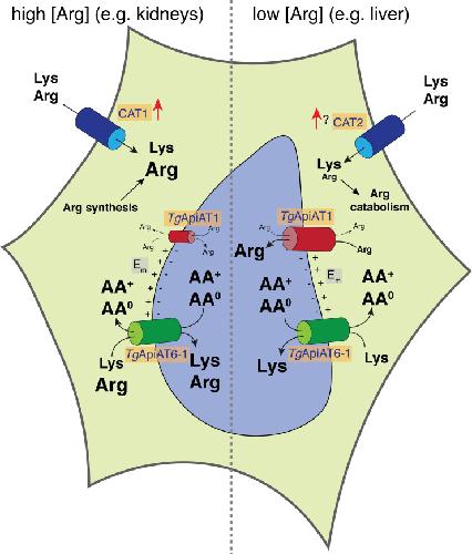 Coordinated action of multiple transporters in the acquisition of essential cationic amino acids by the intracellular parasite Toxoplasma gondii.,